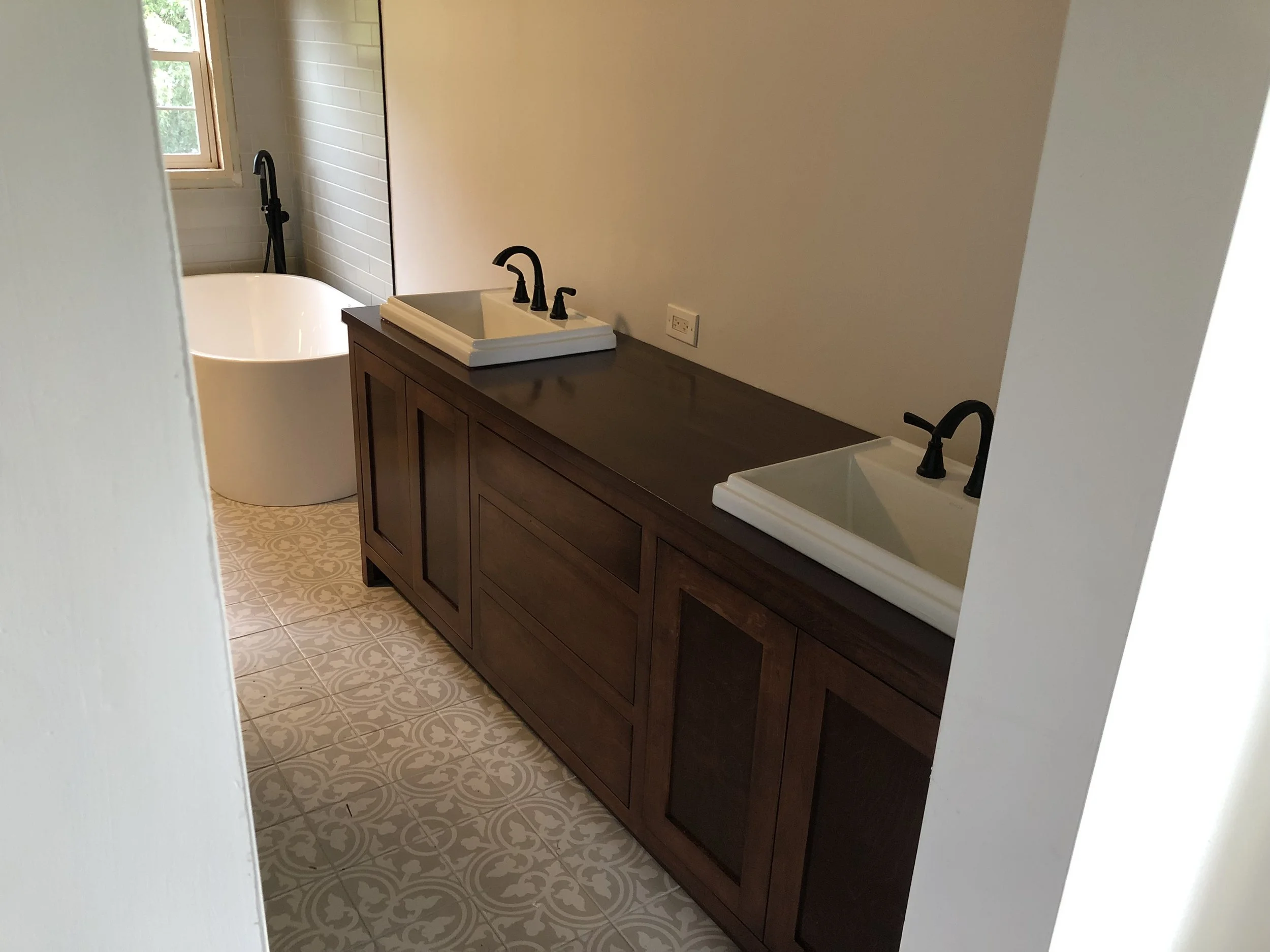 Hardwood Bathroom Vanity with Low VOC Semi-gloss Finish.