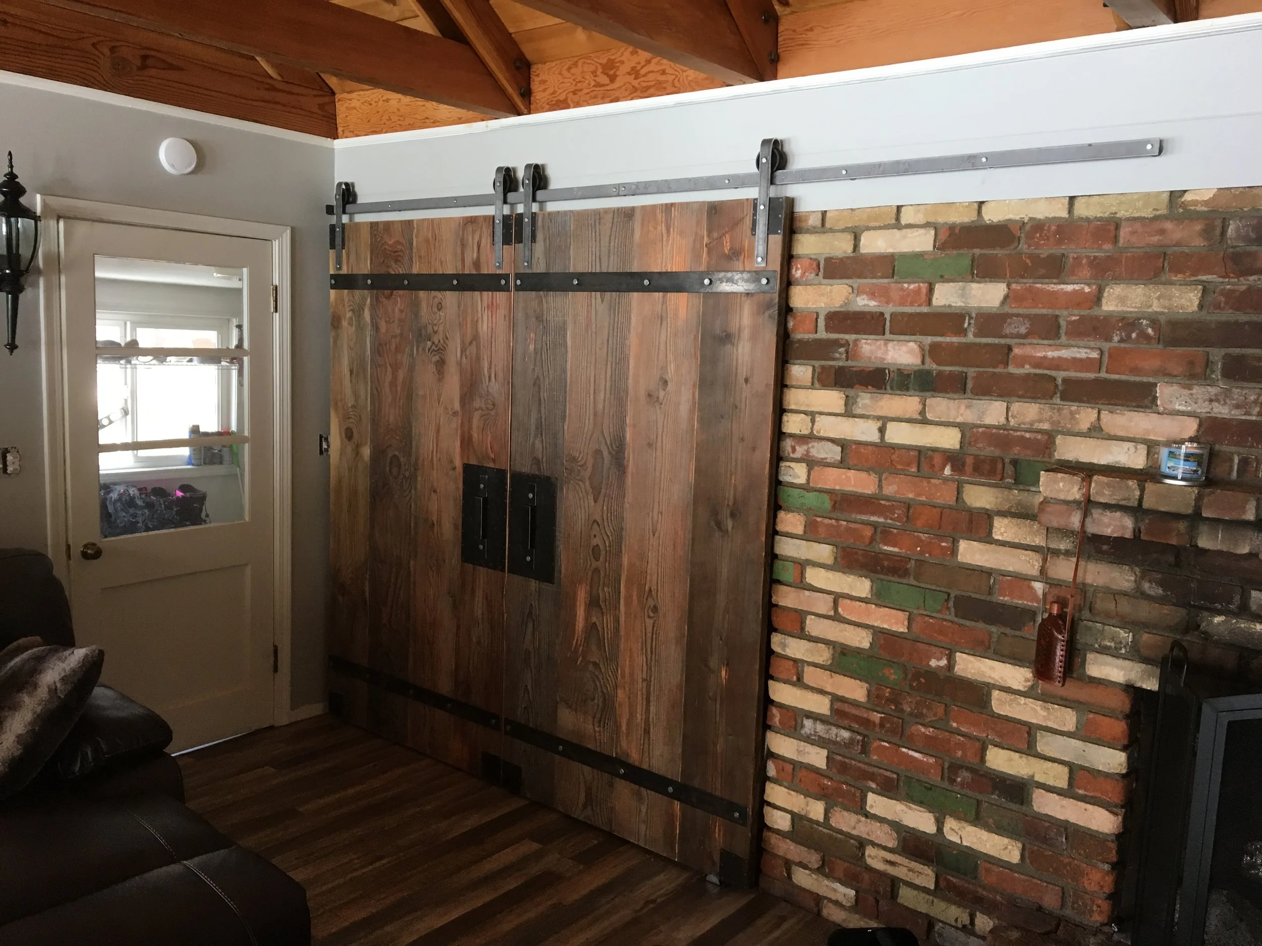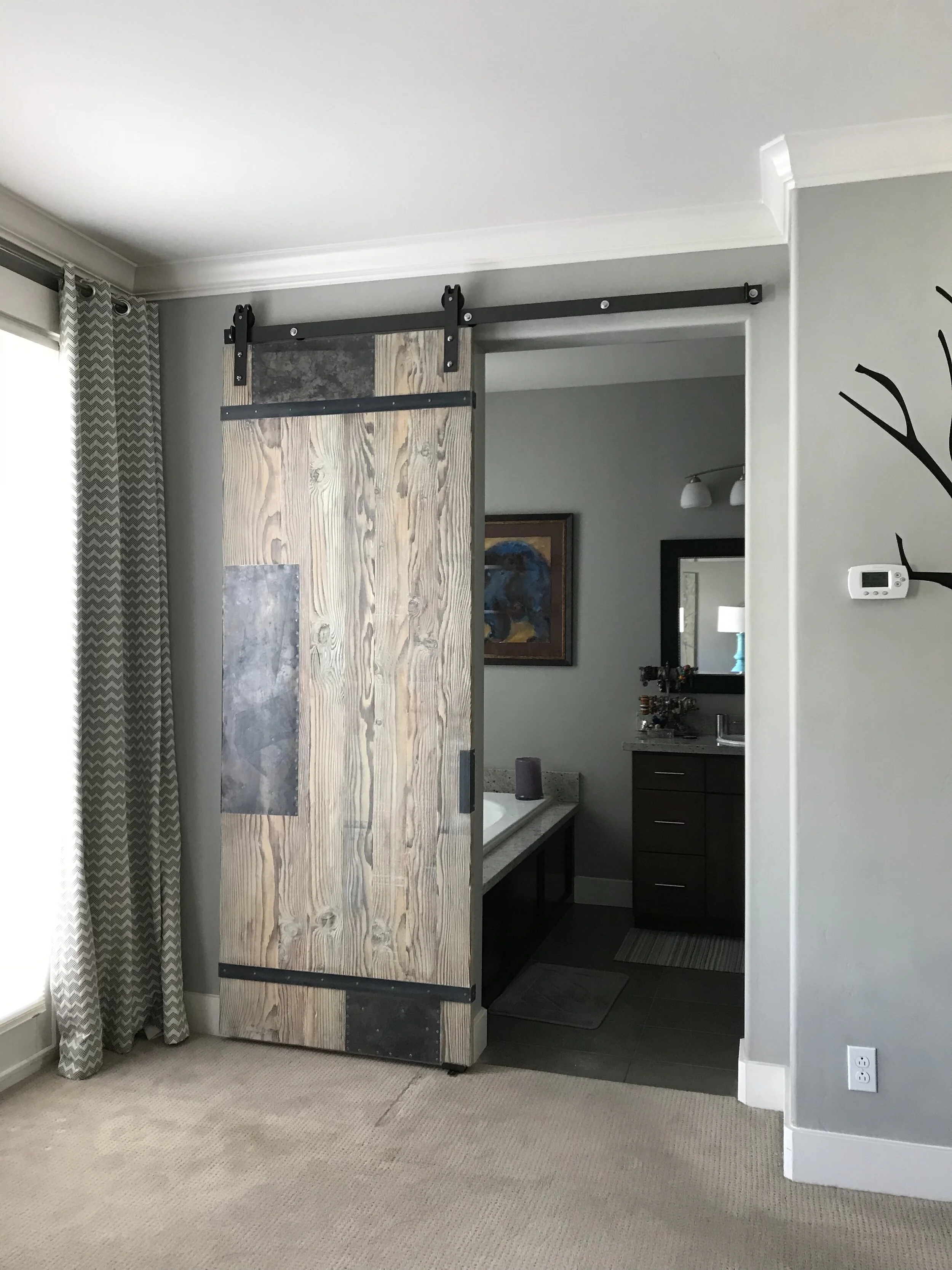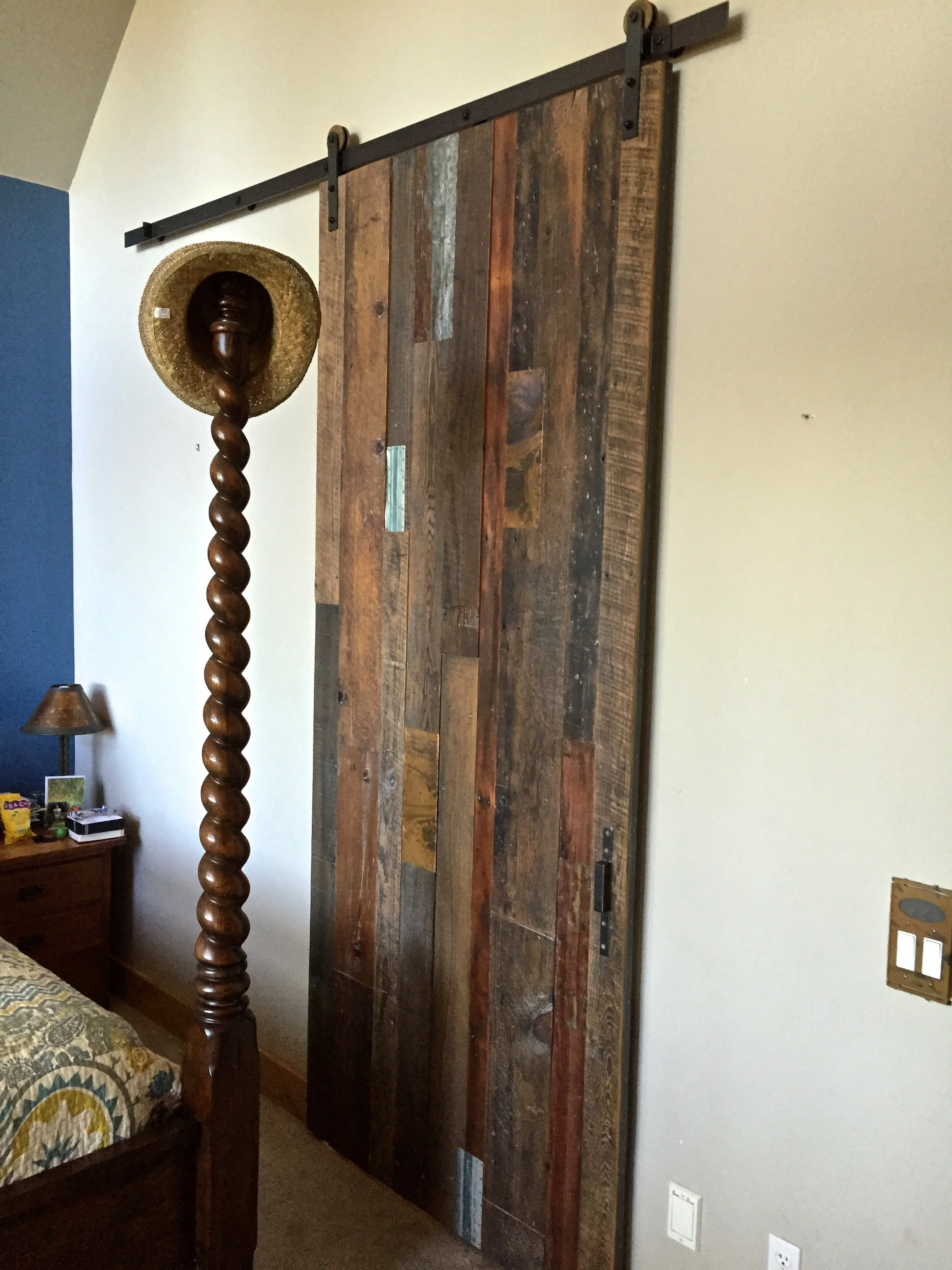 Patchwork Barn Wood Door on Steel Track.