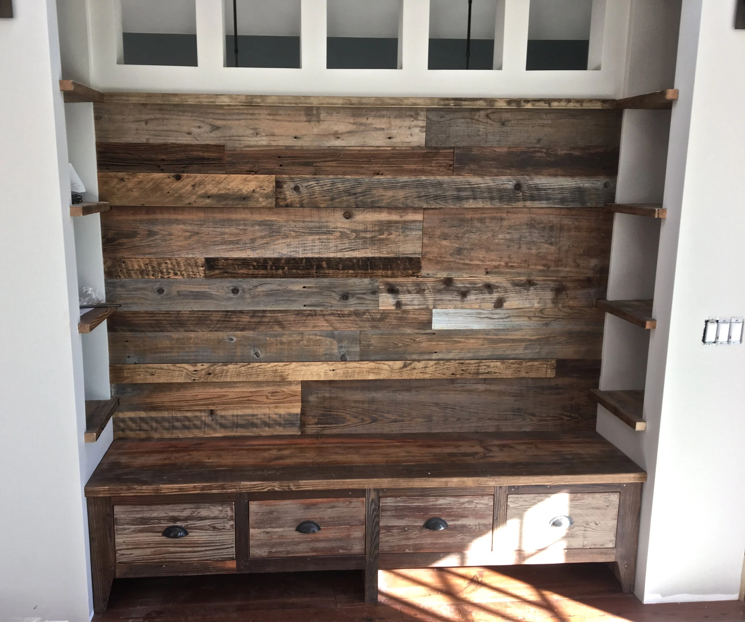 Reclaimed Wood Wine Bar and Fridge Surround.