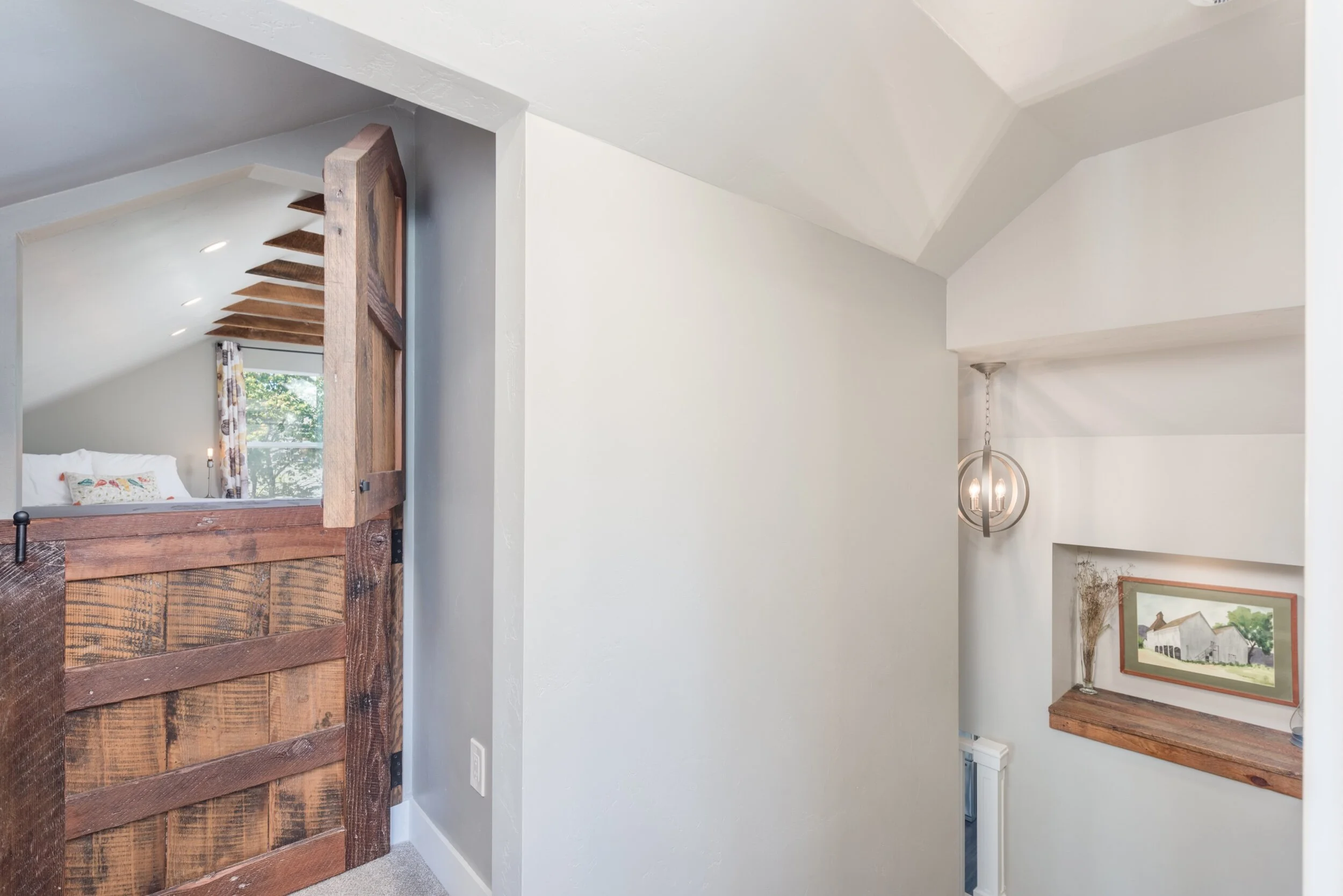 Sliding barn door and white ‘shaker’ armoire