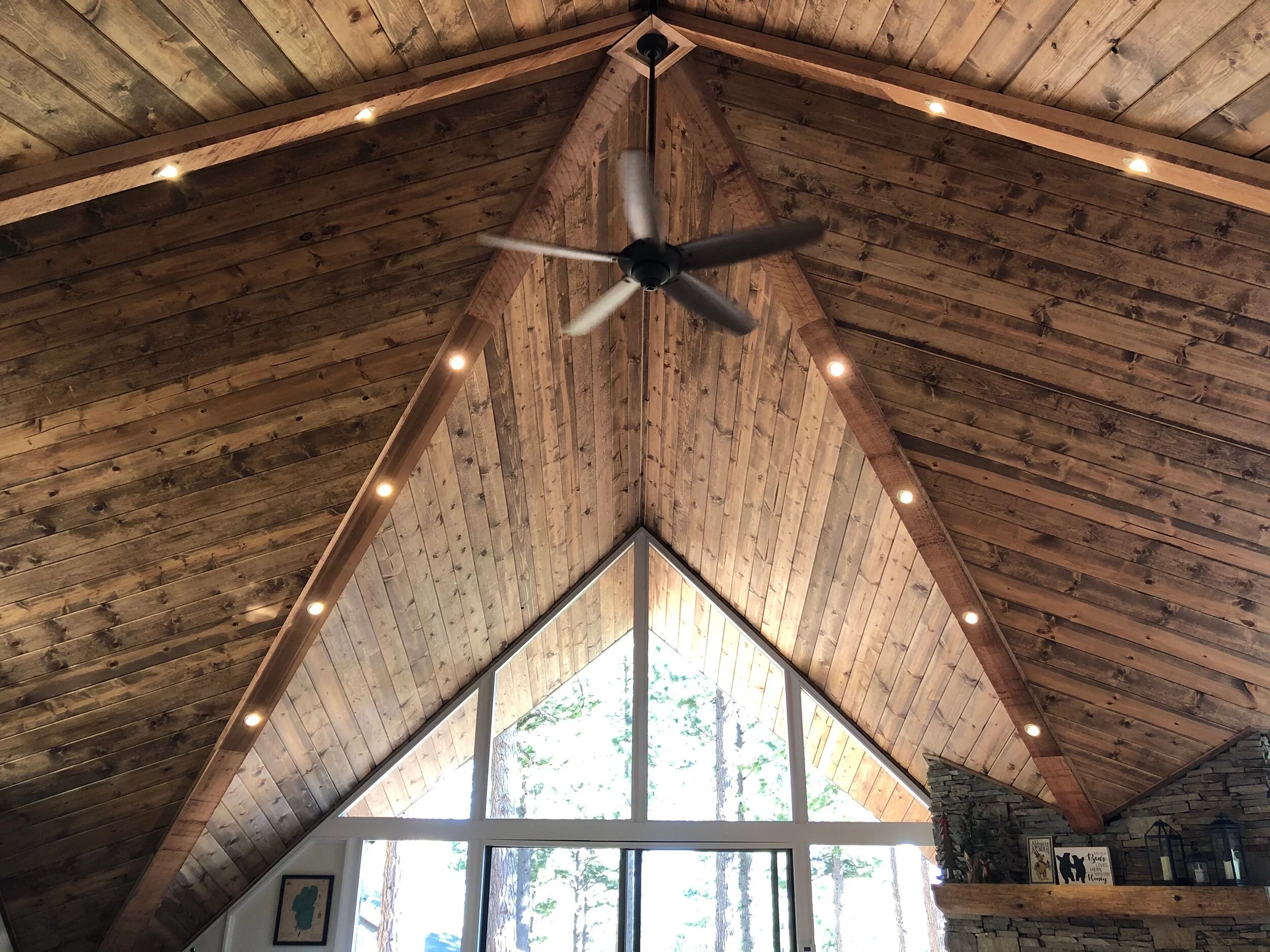 V-groove wood ceiling with LED lighting