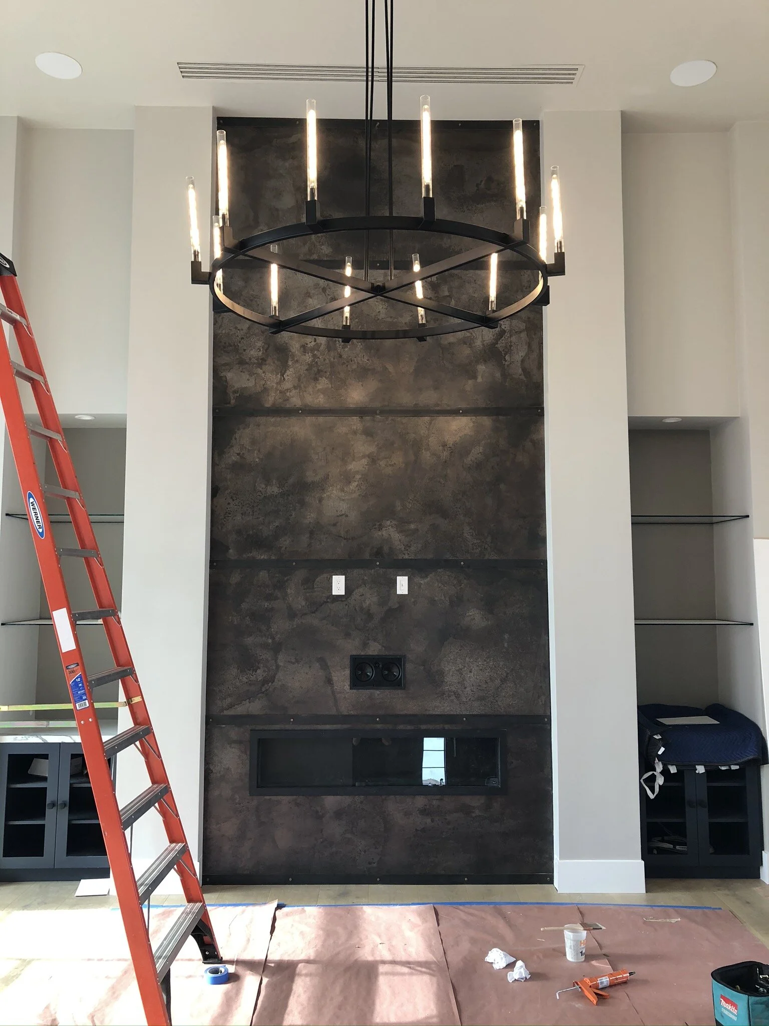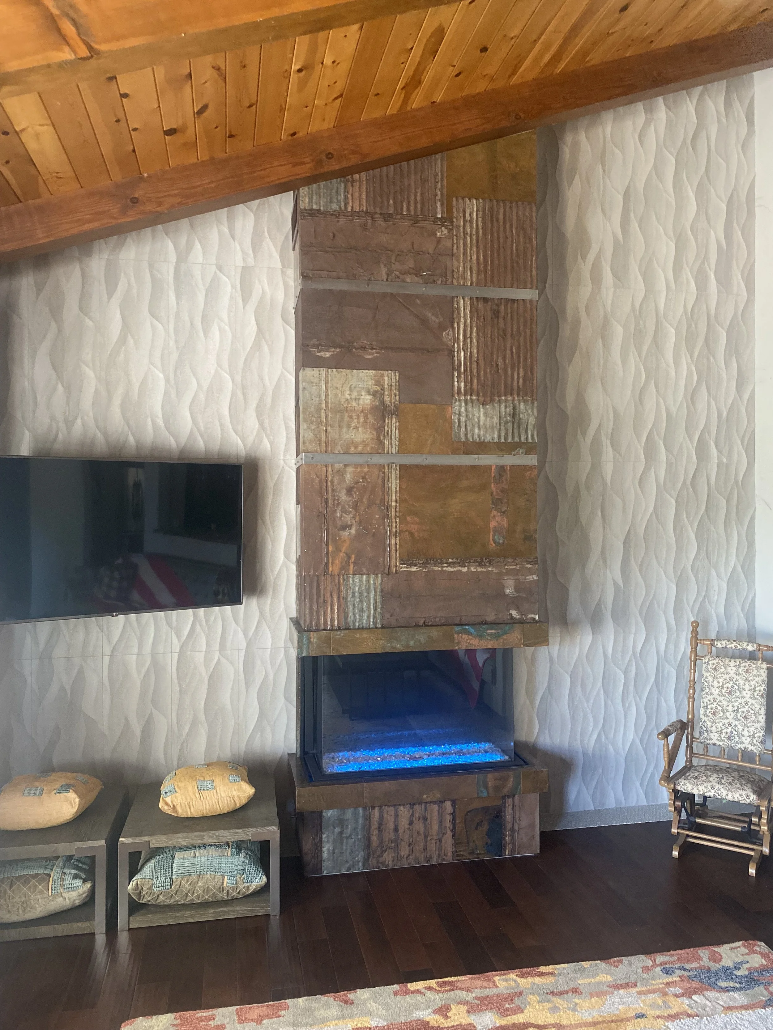Cold rolled steel fireplace wall