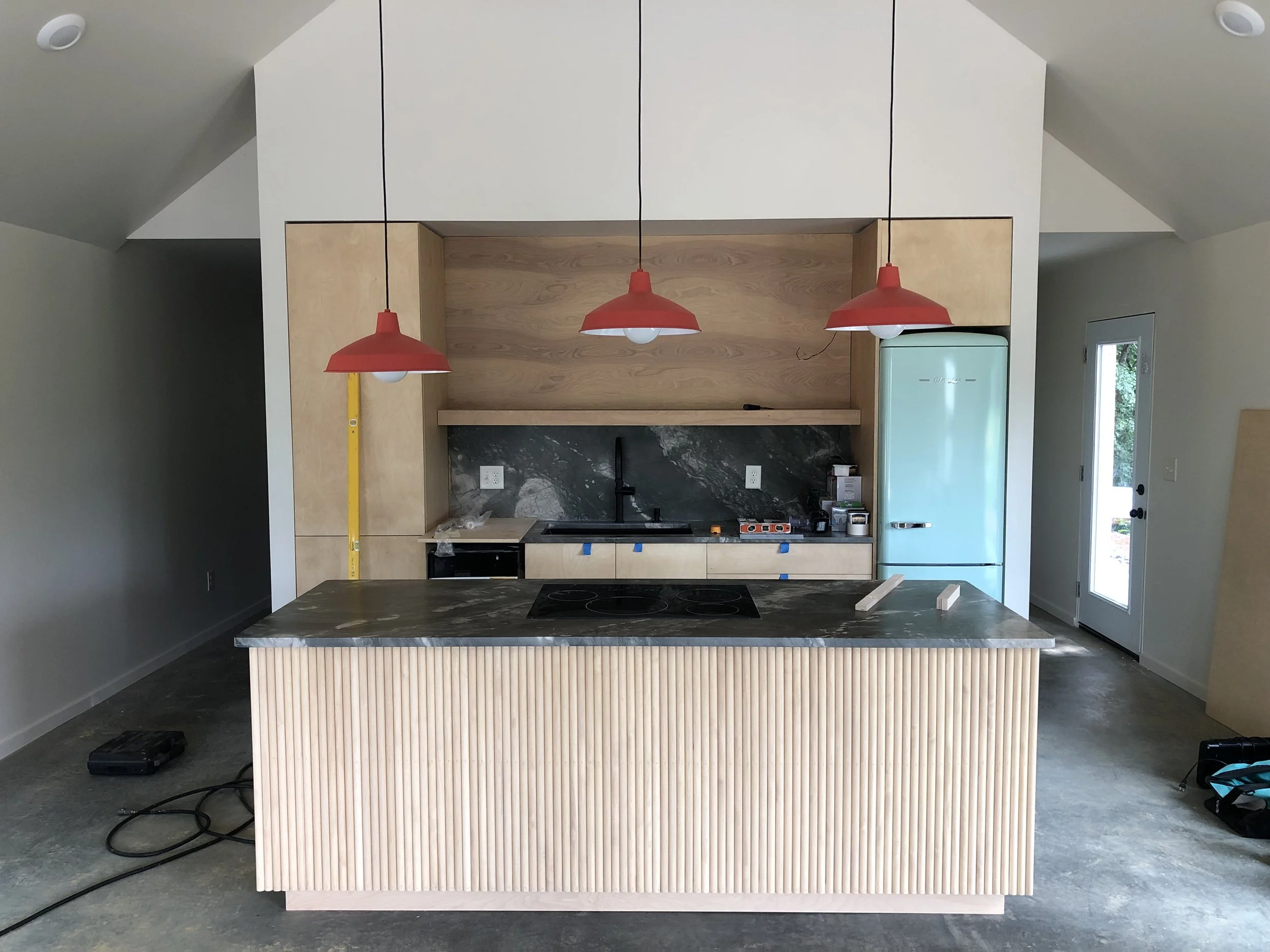 Baltic Birch Kitchen Cabinets and Island.