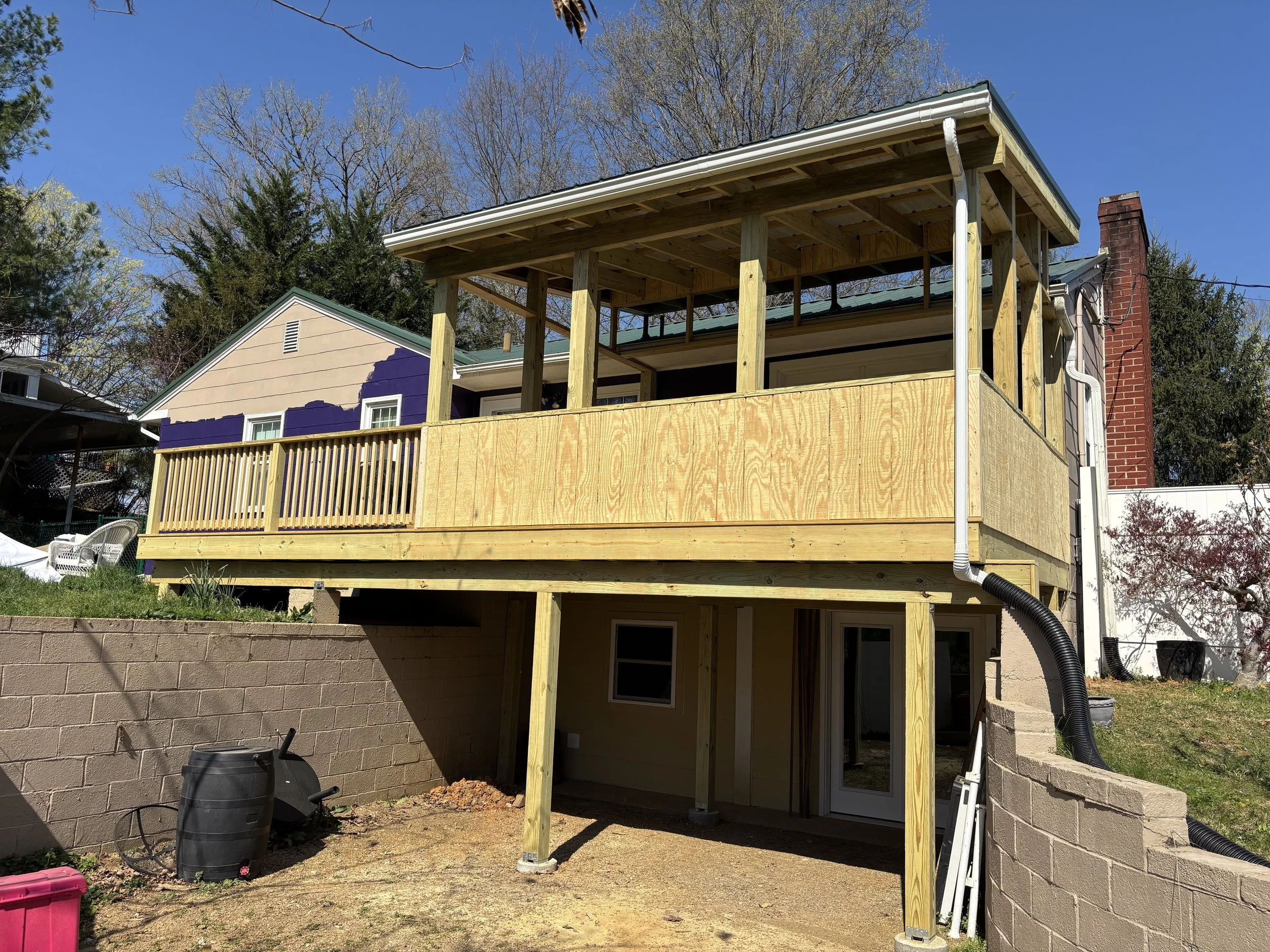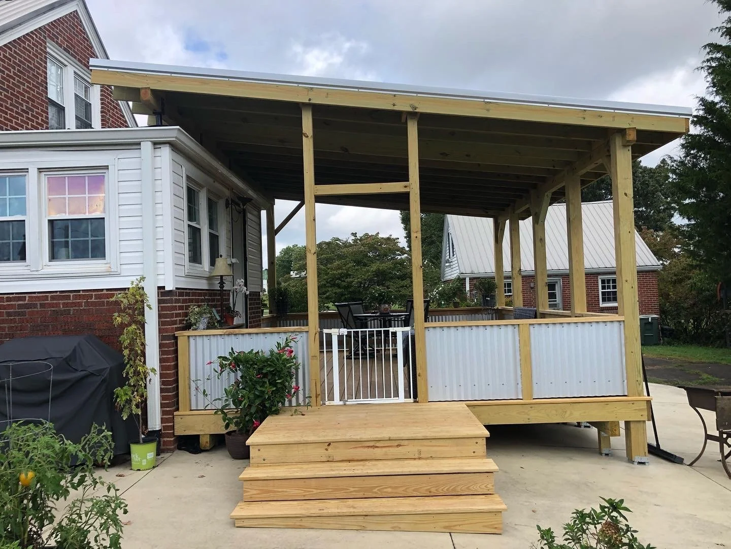 Covered Deck with Metal Roof.