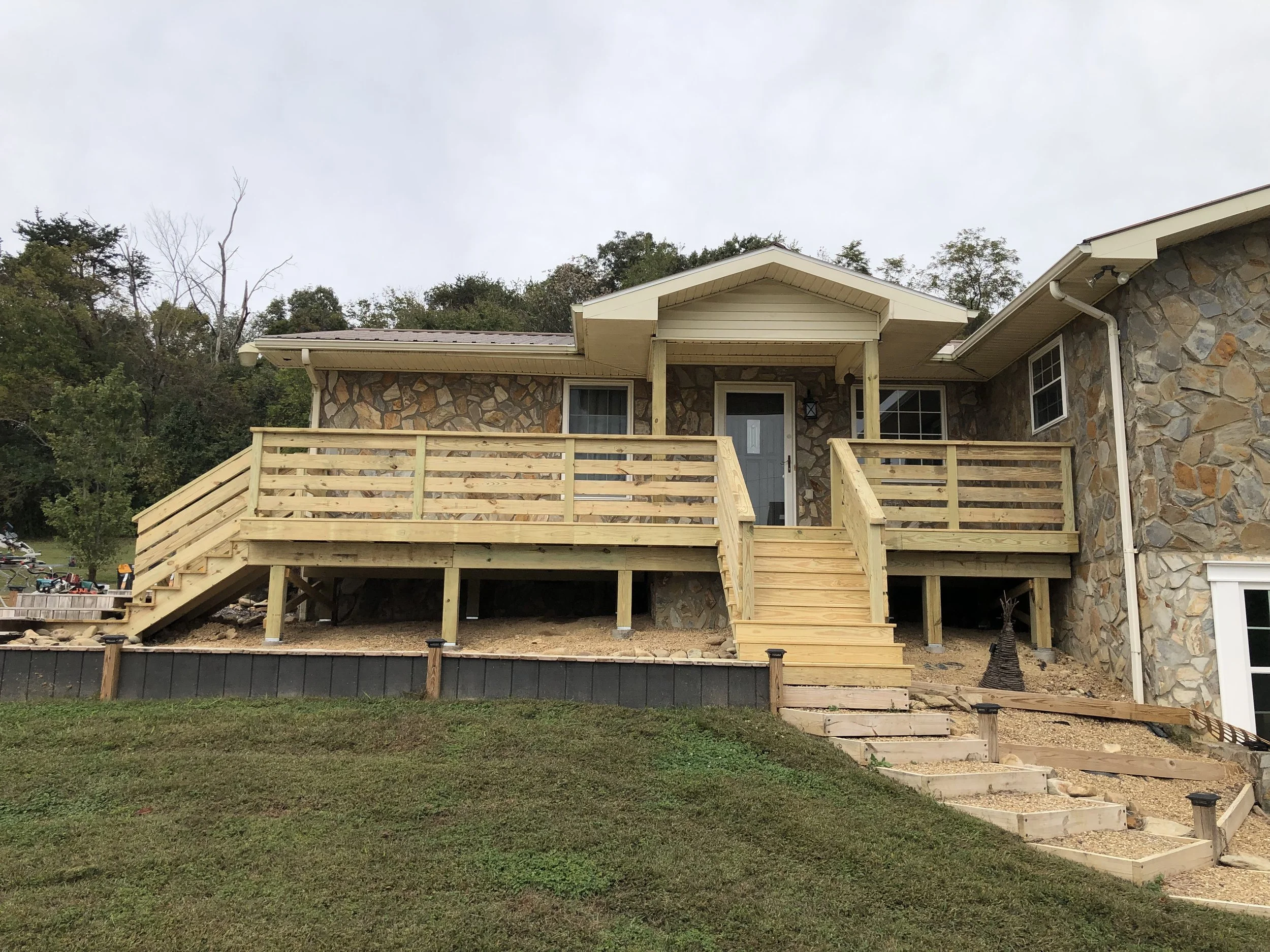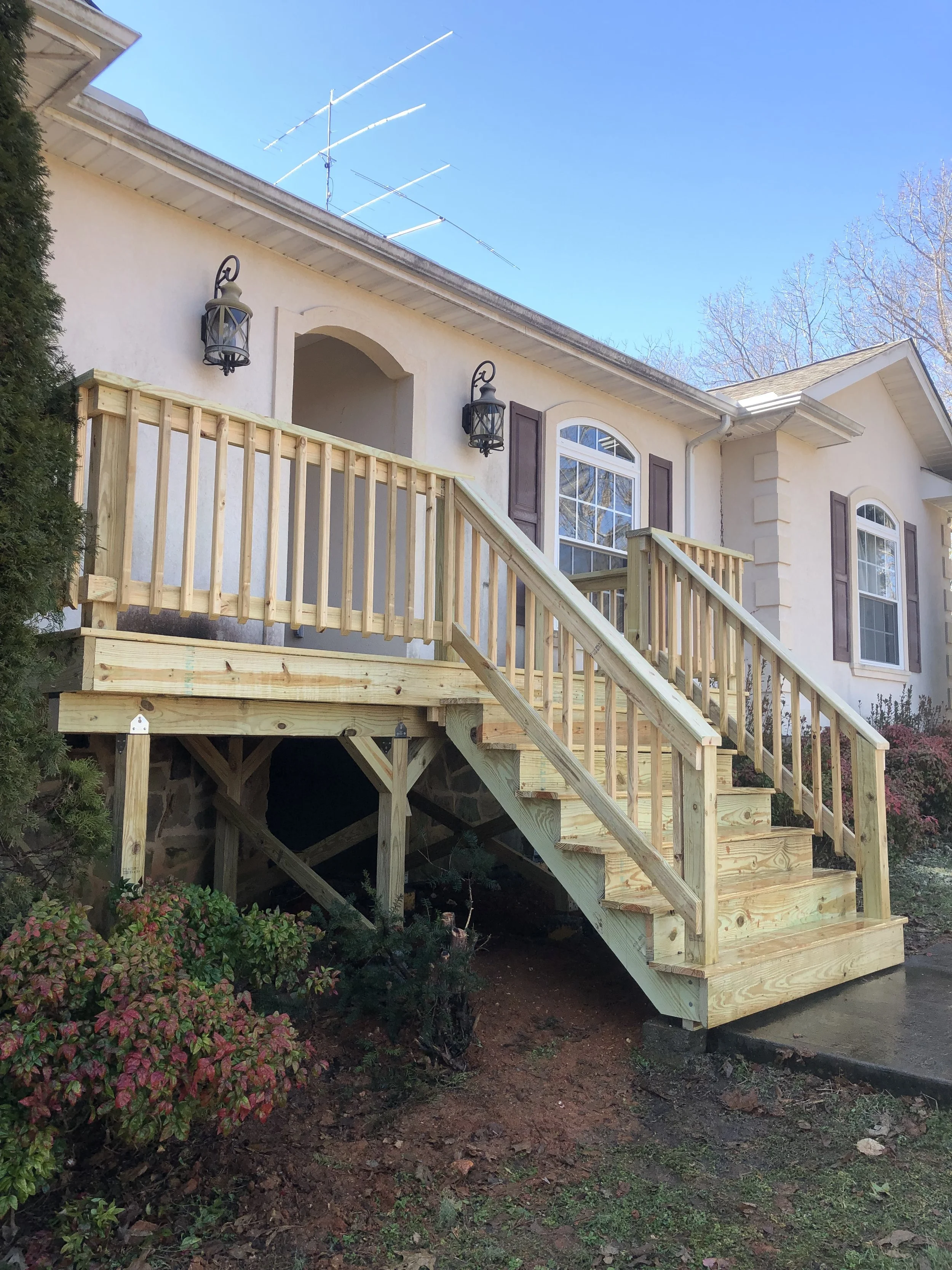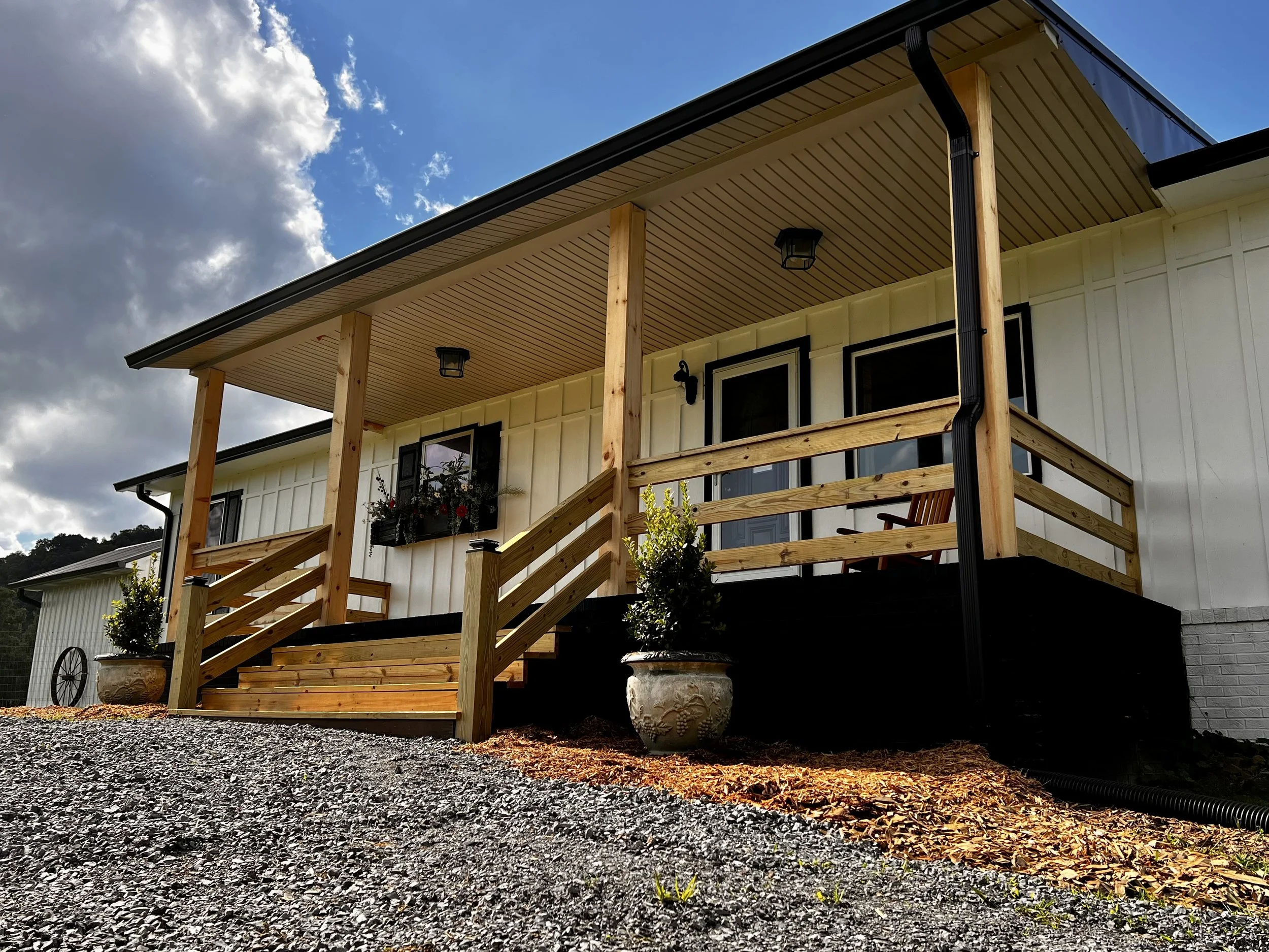 Treated Wood and Pine Front Porch.