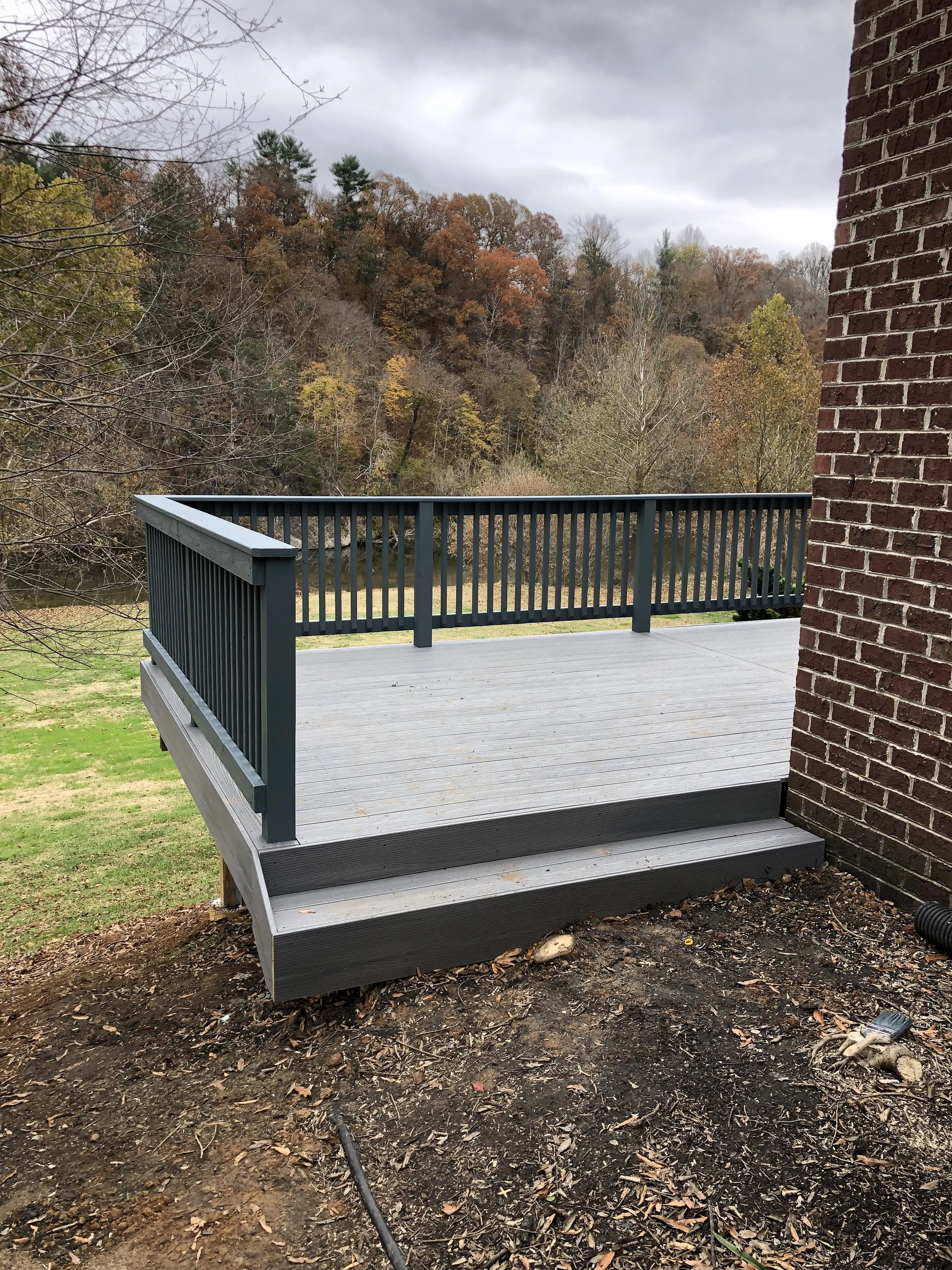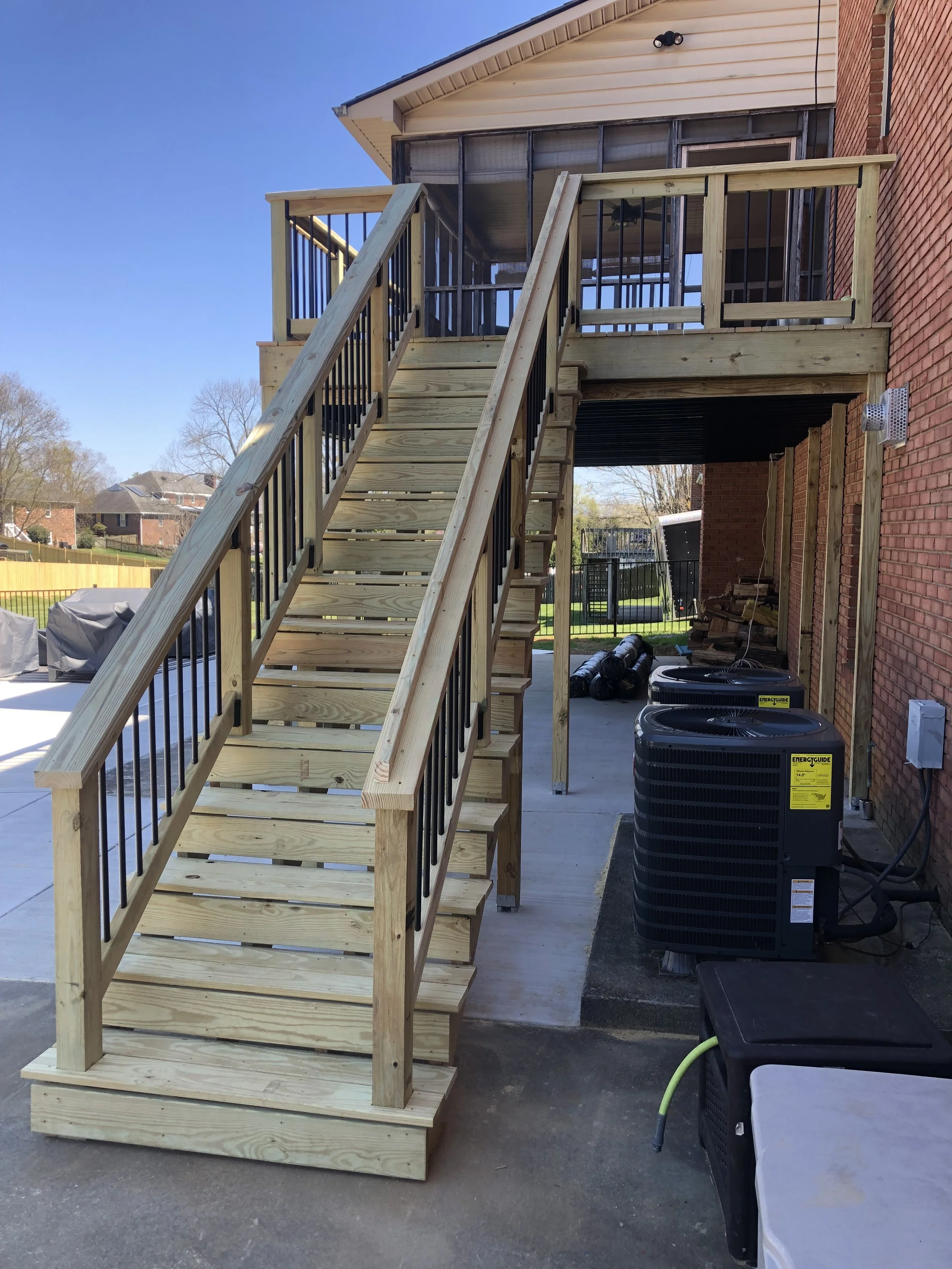 Treated Wood Deck with Aluminum Railing.