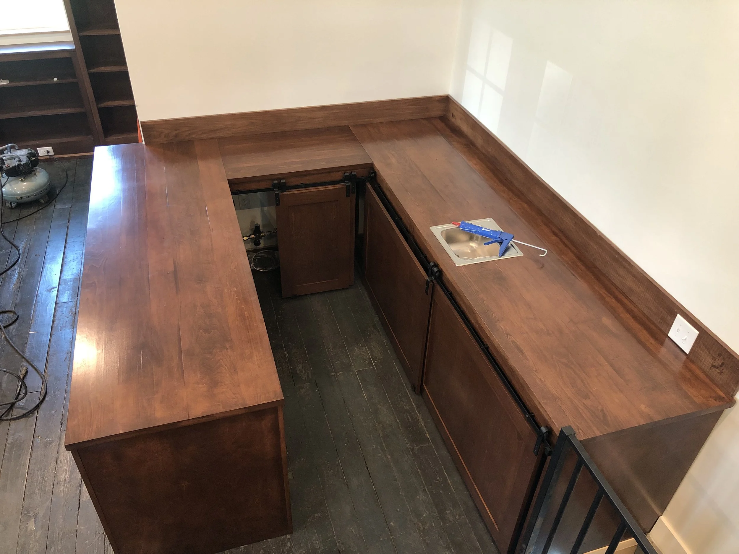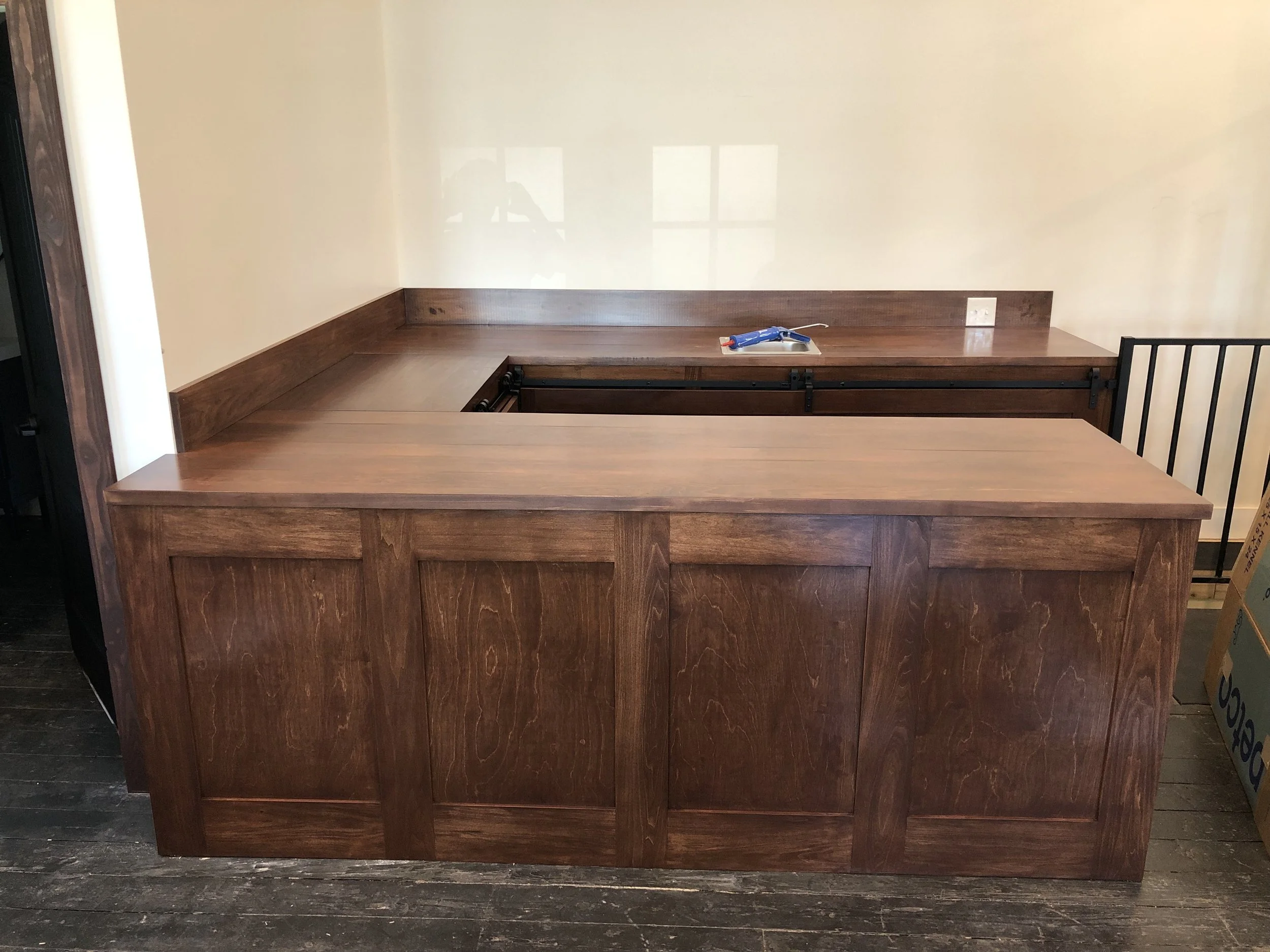 Poplar Counter/Cabinets with sliding Track System.