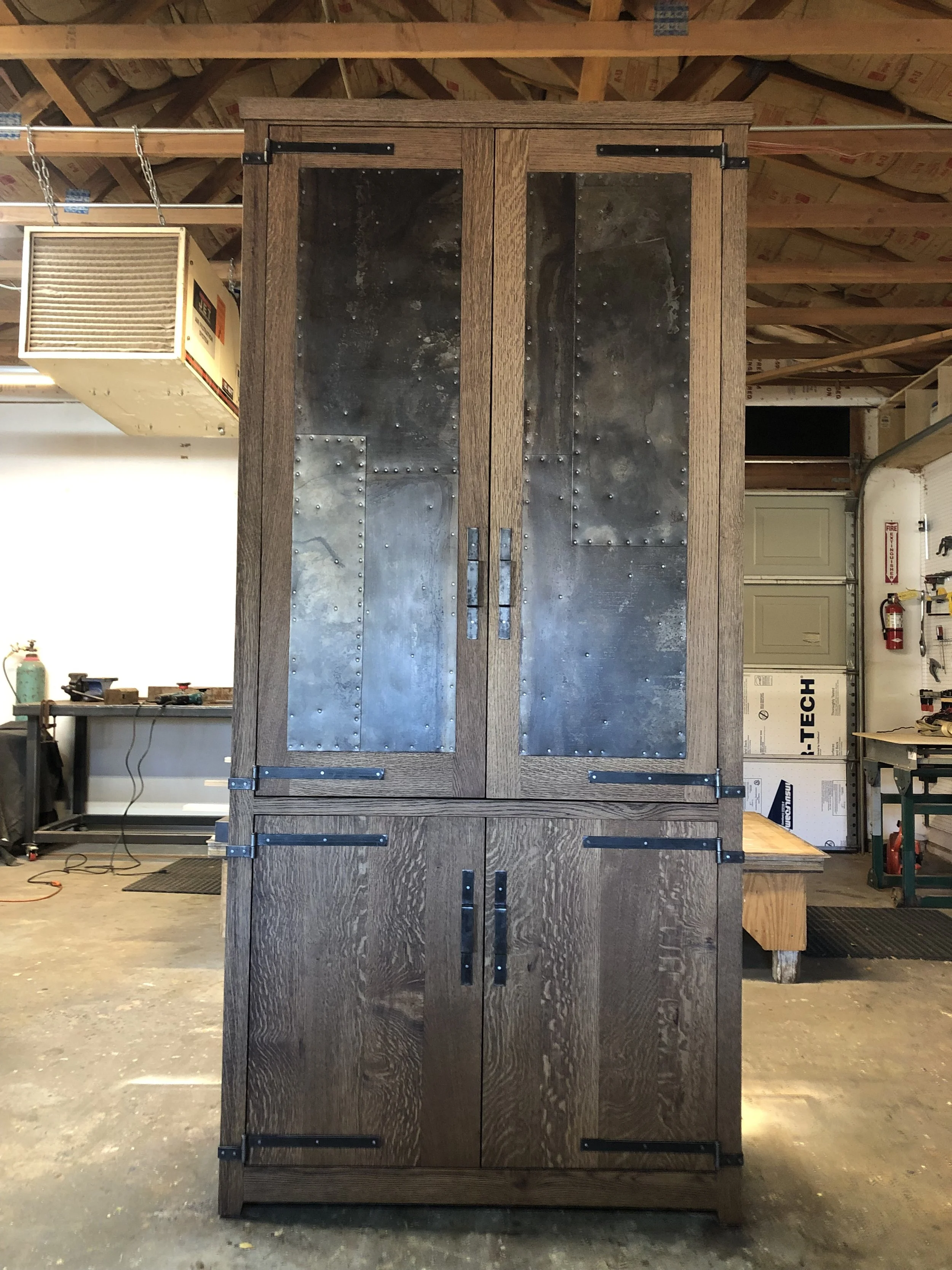 Quarter Sawn White Oak Armoire with Decorative Steel.