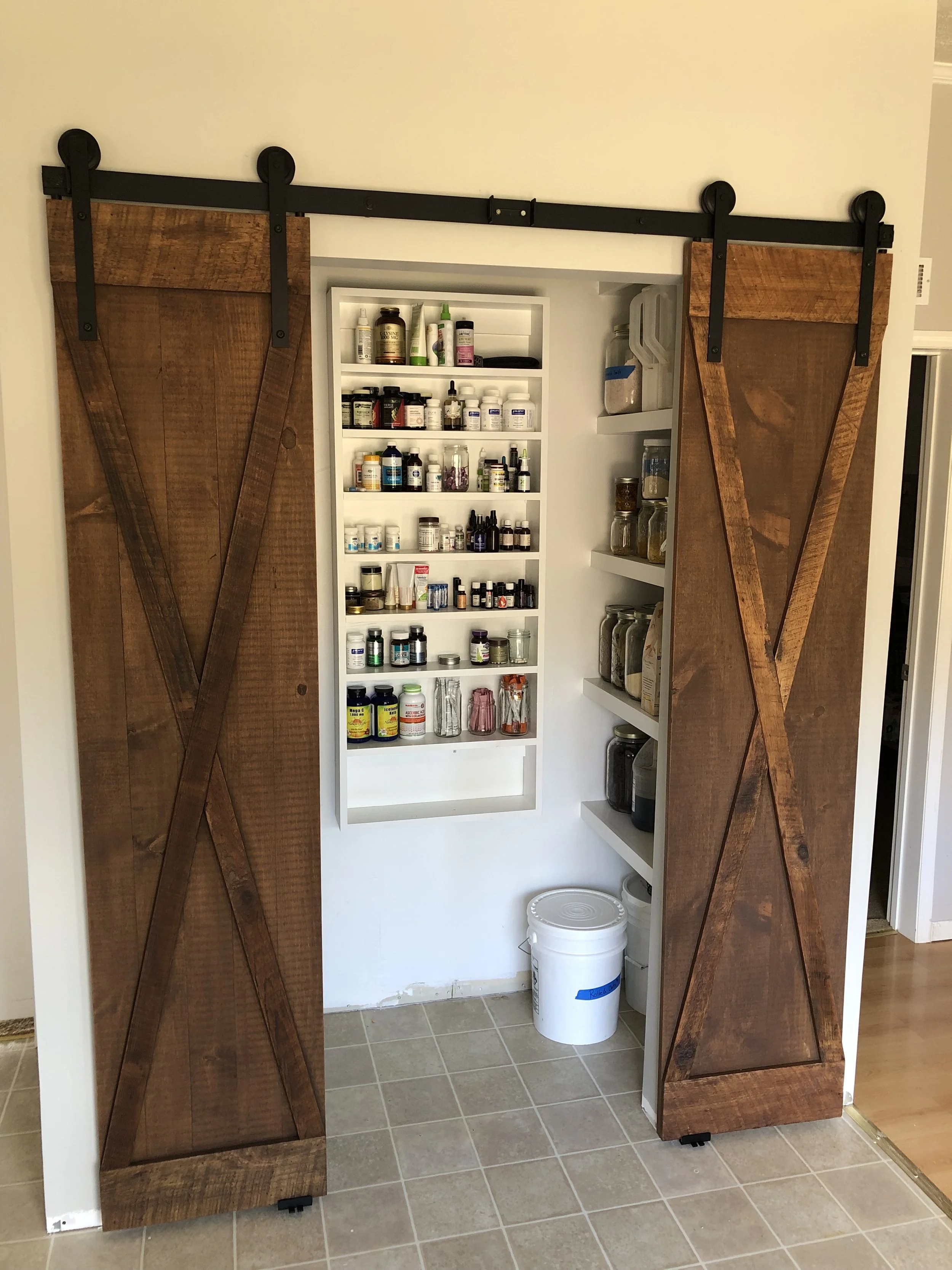 Barnwood Pantry Doors with Steel Matte Black Track.