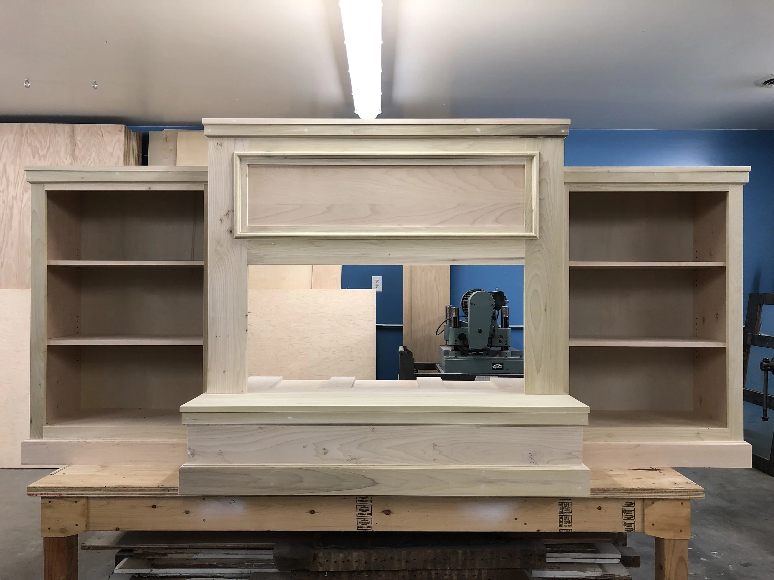 Unfinished Hardwood Fireplace Unit.